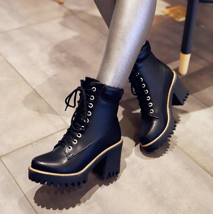 Harajuku lace up heeled platform martin boots.