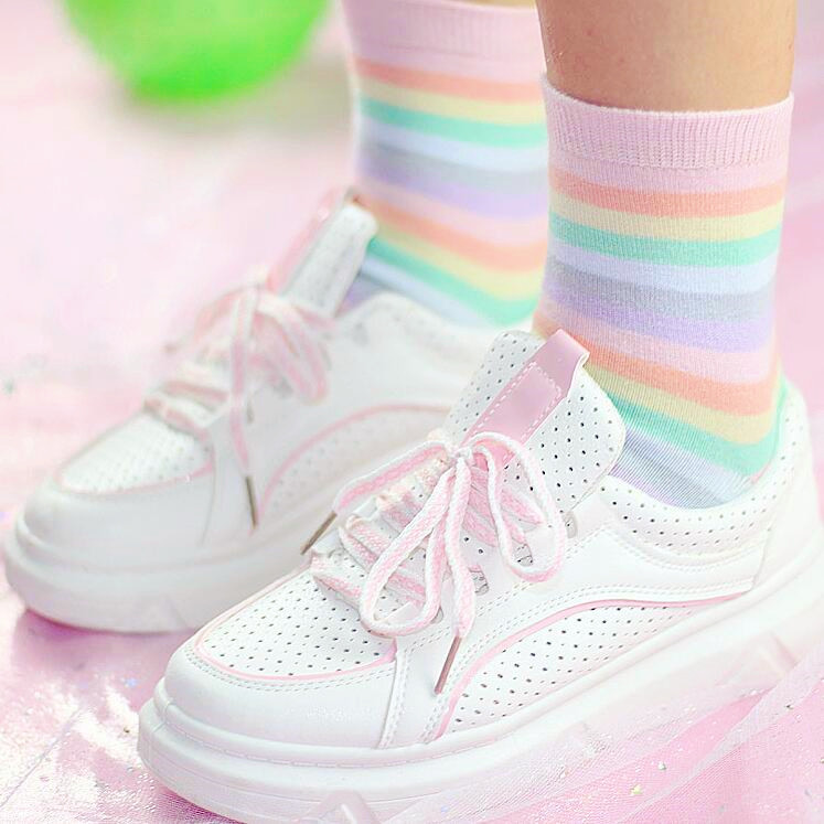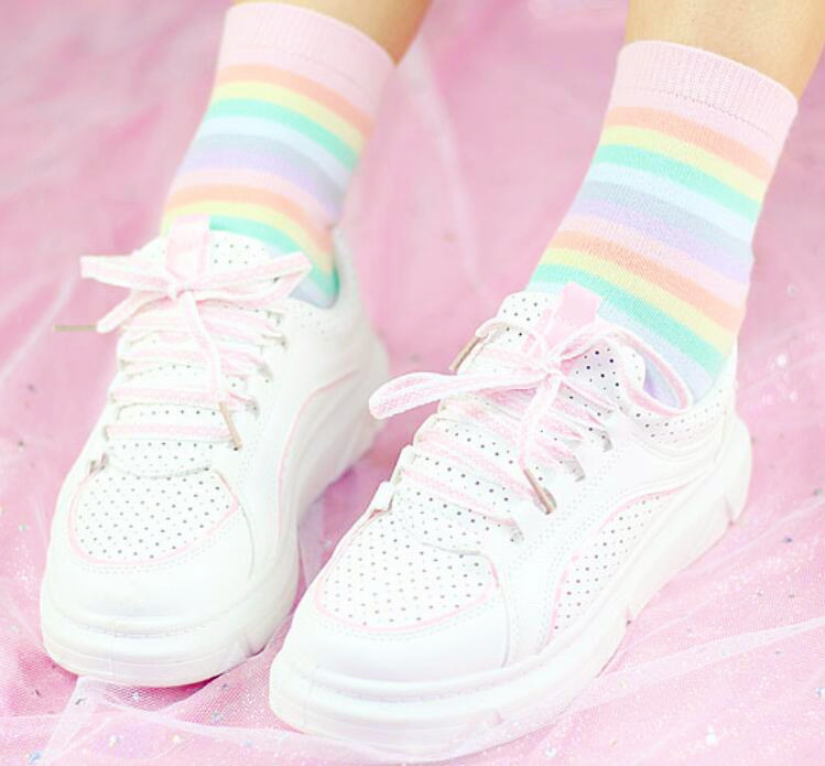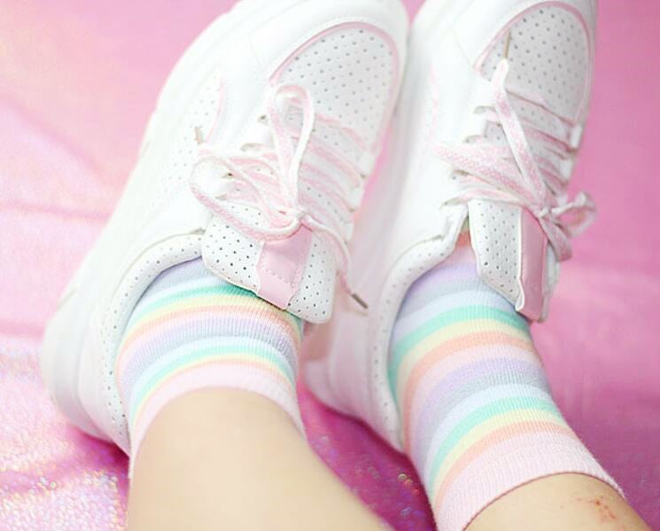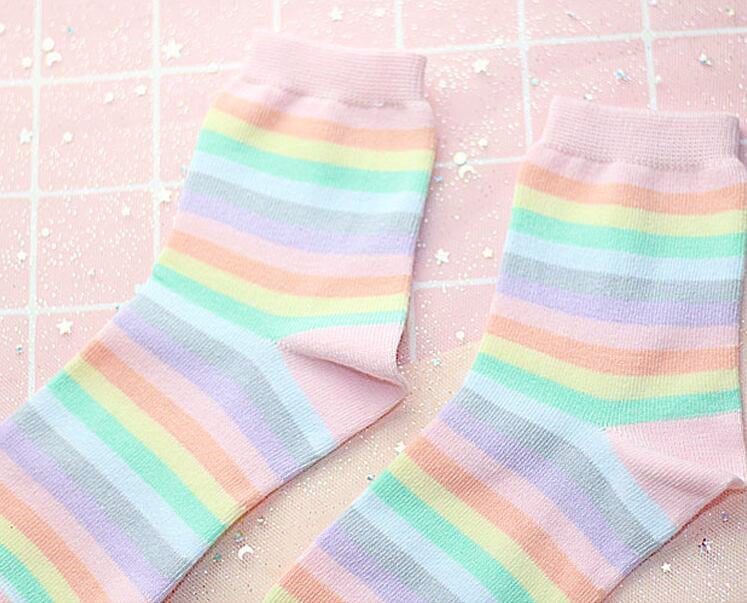 Harajuku & Fashion pastel rainbow stripe socks, durable and high quality fabrics, not easy to break.