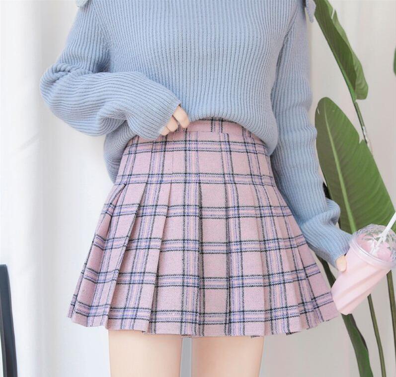 Fashion & Chic plaid high waist woolen pleated skirt.