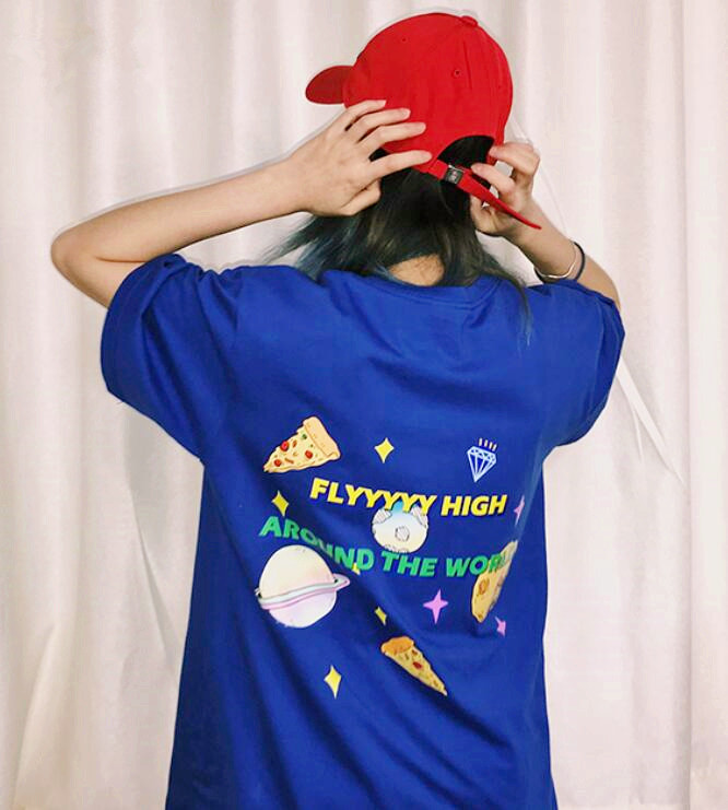 Harajuku & Fashion pizza universe planet printed blue T-shirt.