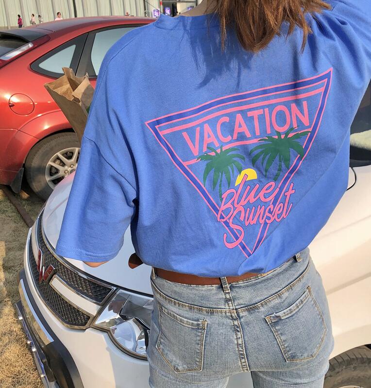 Harajuku & Fashion VACATION blue sunset printed tee.