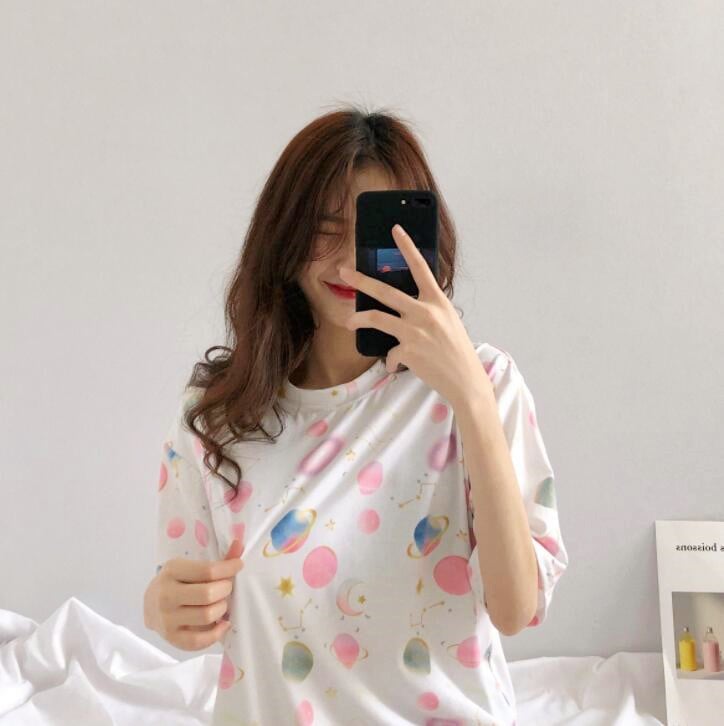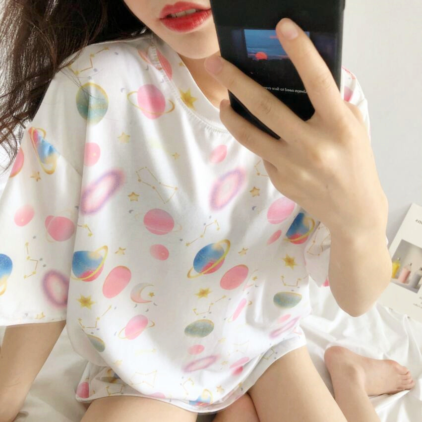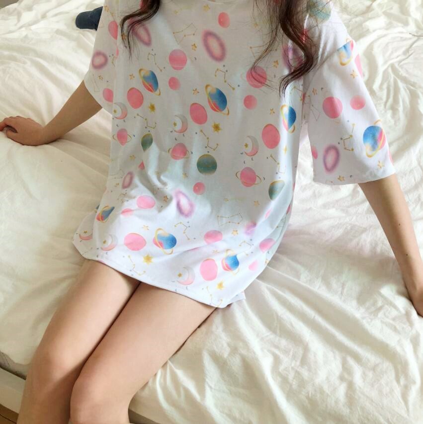 Harajuku & Fashion pastel galaxy planet moon printed tee.