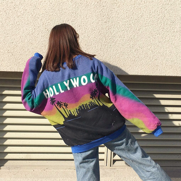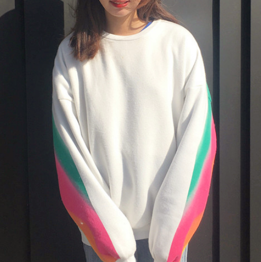 Fashion & Harajuku HOLLYWOOD printed rainbow sleeve sweatshirt.