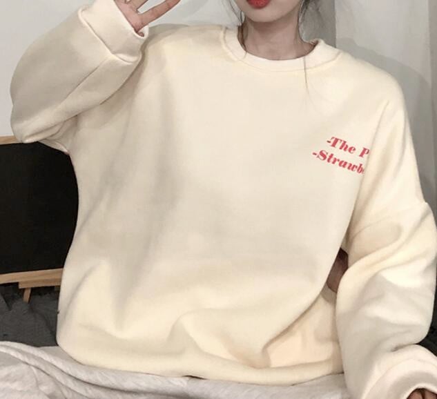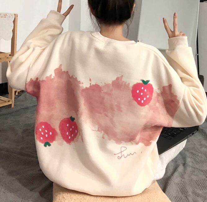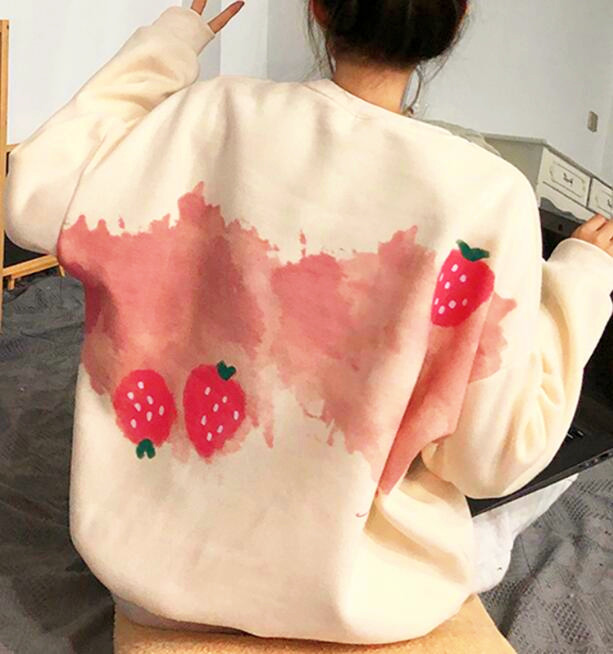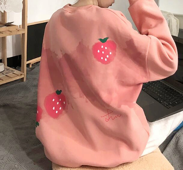 Harajuku pastel color strawberry printed thick sweatshirt.