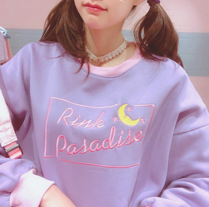 Fashion & Harajuku Rink Paradise moon star embroidered sweatshirt.