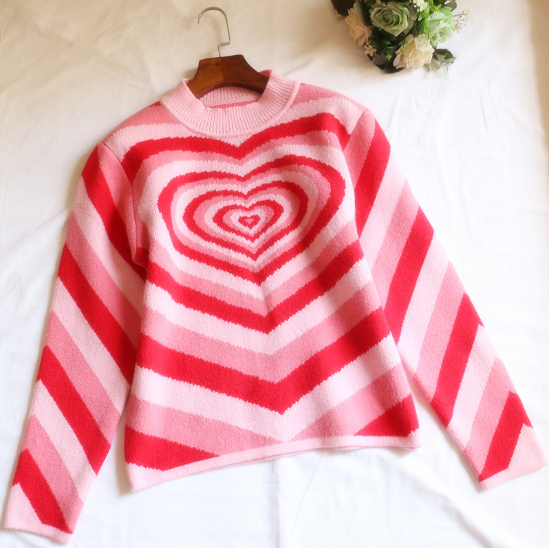 Sweet & Harajuku pinky heart color block high collar knitted top.