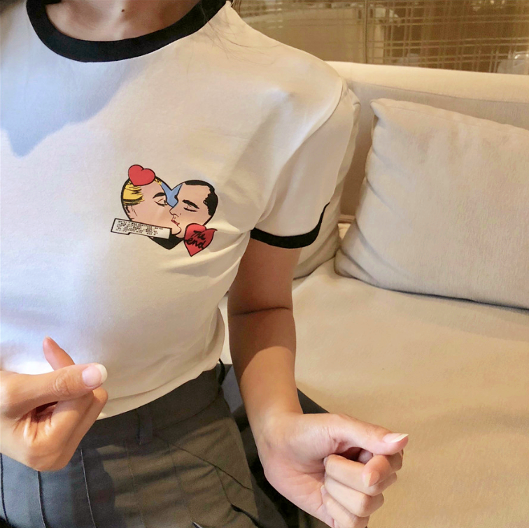 Chic & Harajuku pastel pink / white kiss love printed tee.