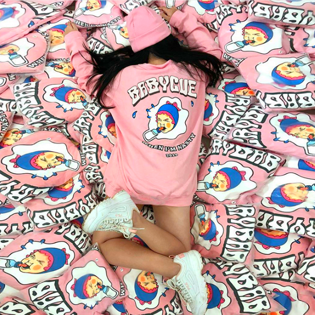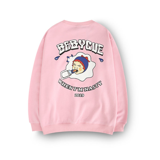 Harajuku & Loose BABYCUE printed pastel pink sweatshirt.