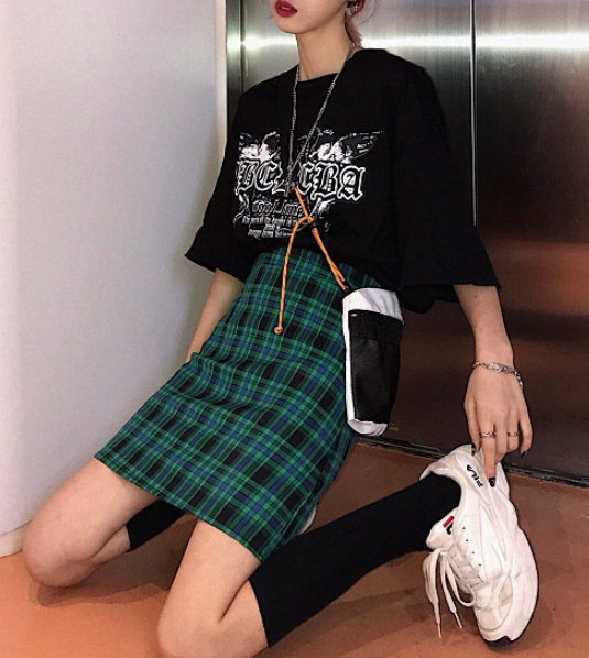 Chic High Waist Green Checker Skirt