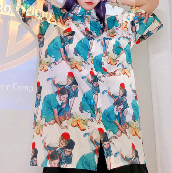 Vintage & Cute children fun printed short sleeve women shirt blouse.