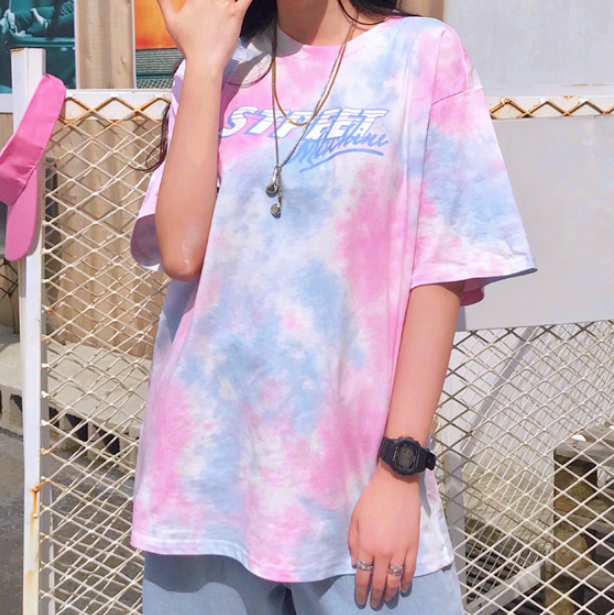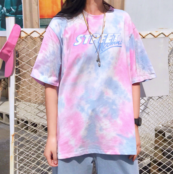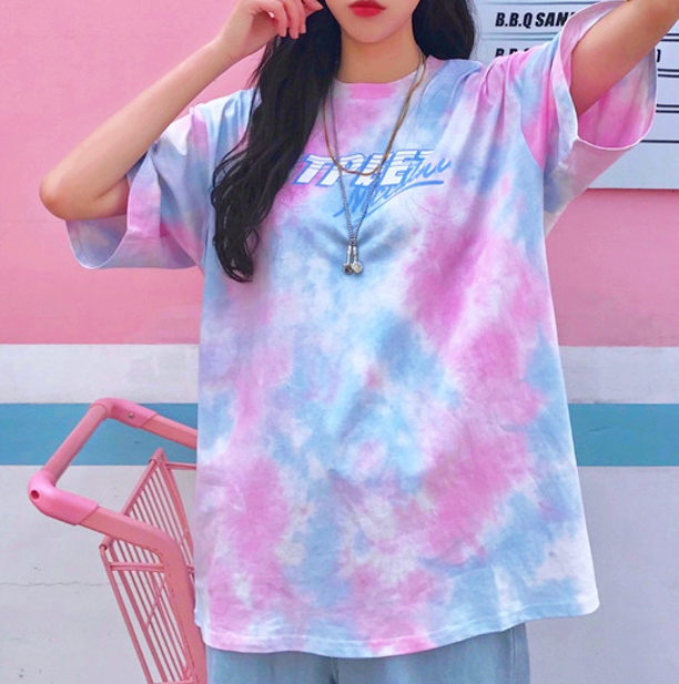 Harajuku & Fashion STPEET printed pastel pink blue tie dye tee.
