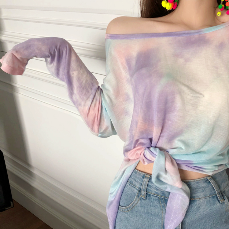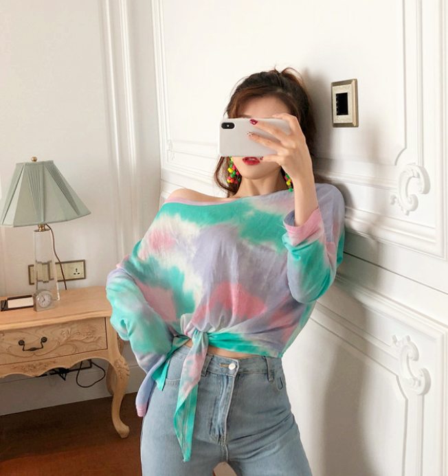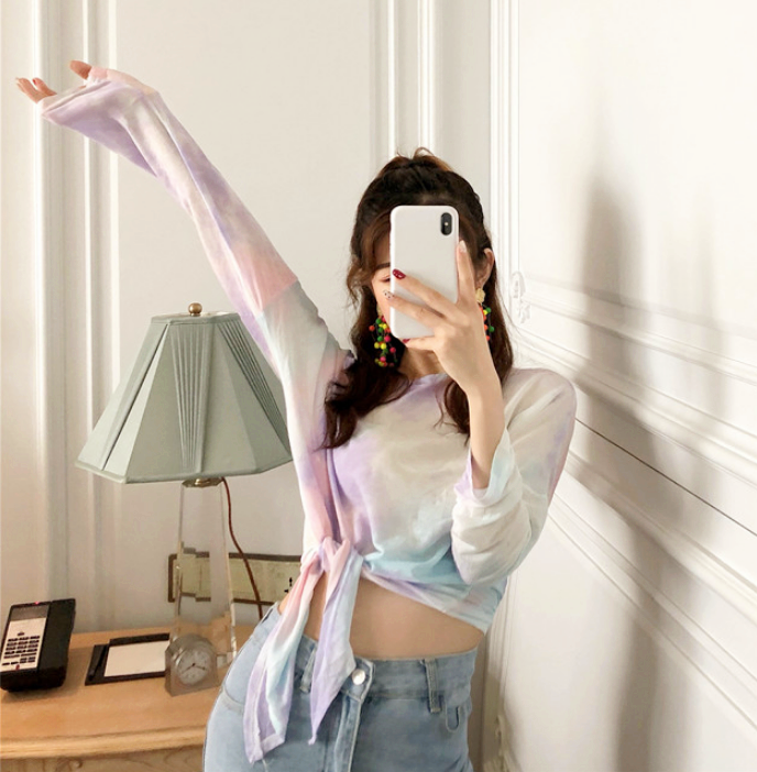 Harajuku & Fashion pastel color gradient lace up long sleeve top.