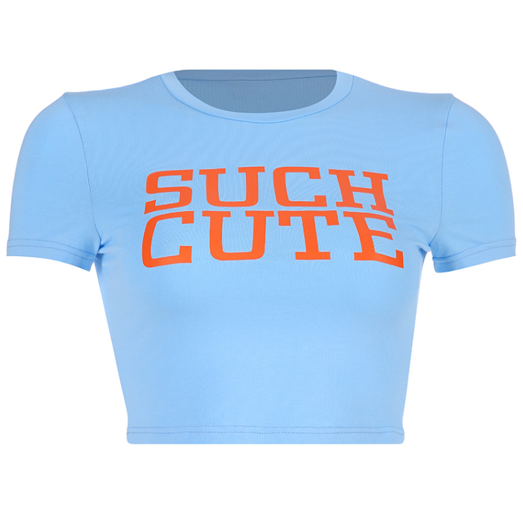 Fashion & Sexy SUCH CUTE printed blue crop top.