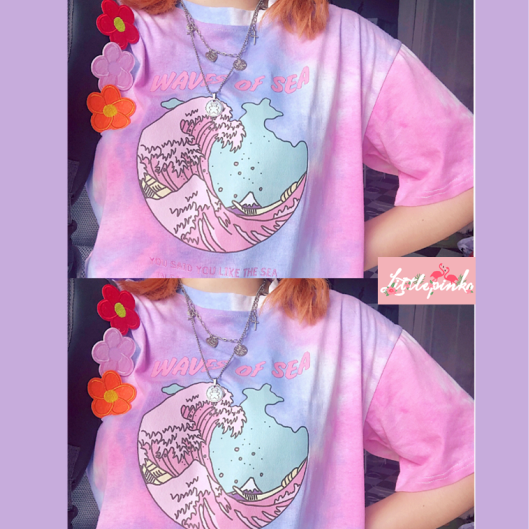 Harajuku & Sweet waves of sea printed pastel pink tie dye tee.