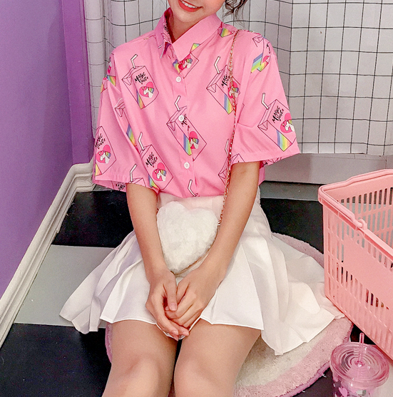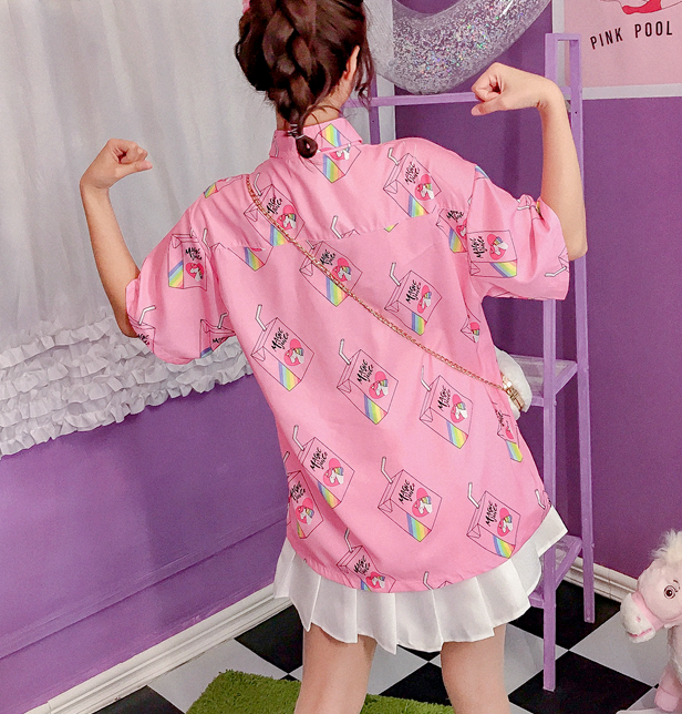 Harajuku & Cute magic juice box unicorn printed pink blouse.