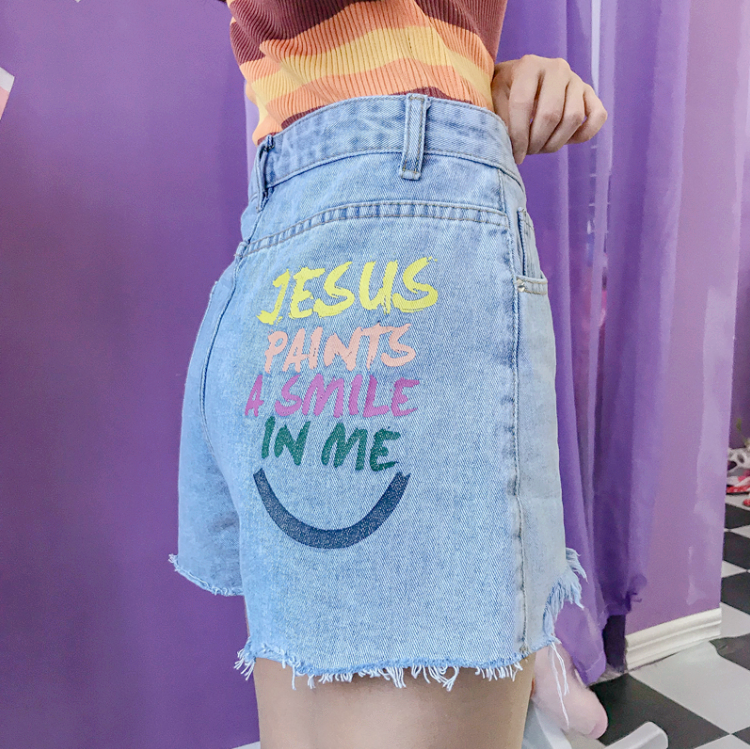 JESUS PAINTS A SMILE IN ME Colored Denim Shorts
