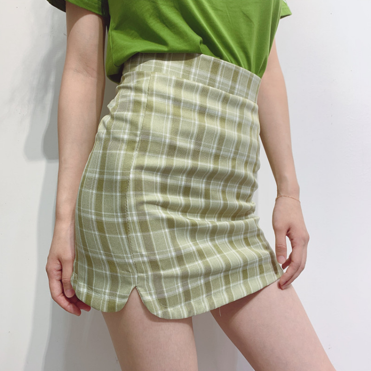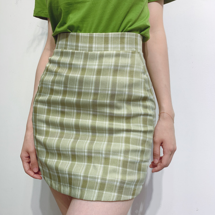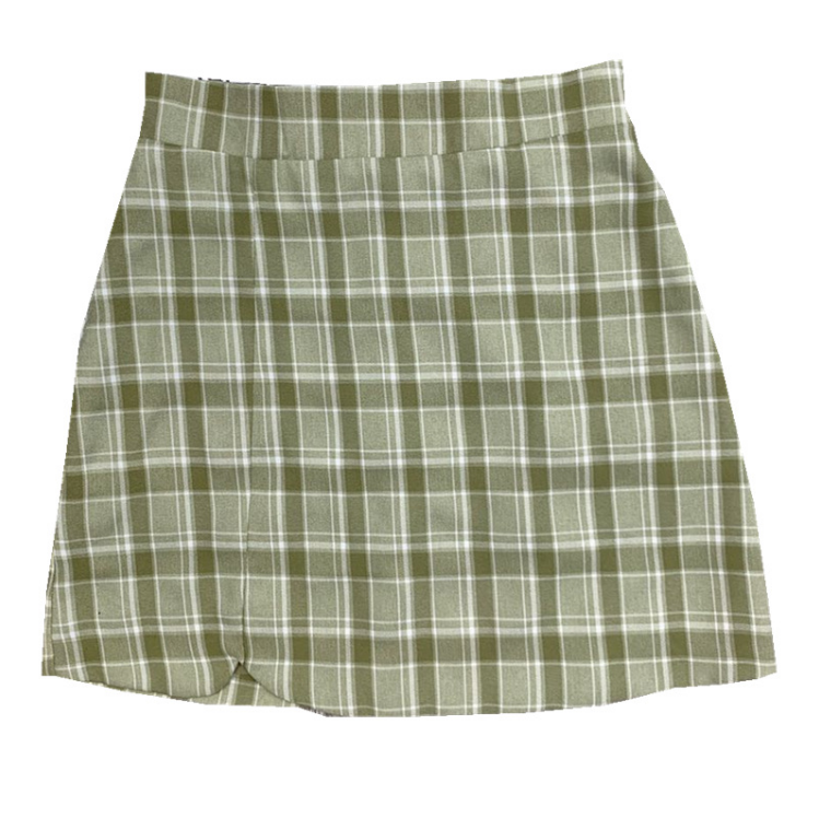 Free Shipping Retro Avocado Green Plaid A-line Skirt