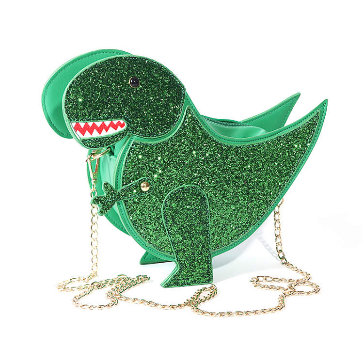Cute & Cartoon dinosaur glitter metallic chain shoulder bag, cross-body bag.