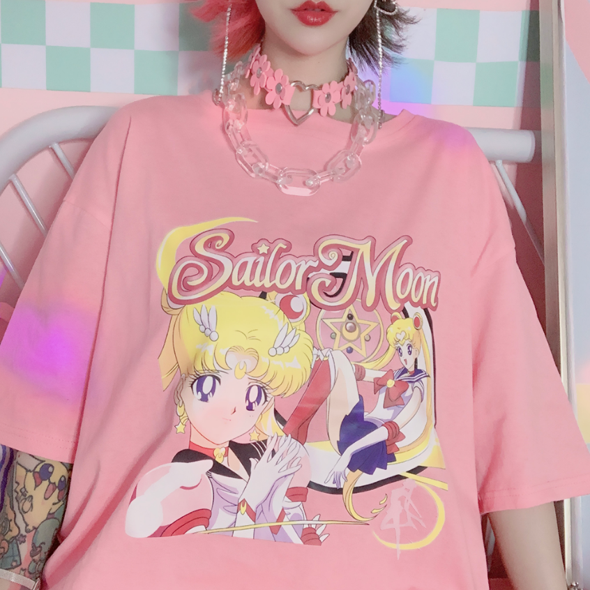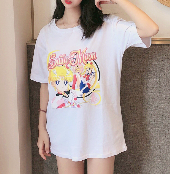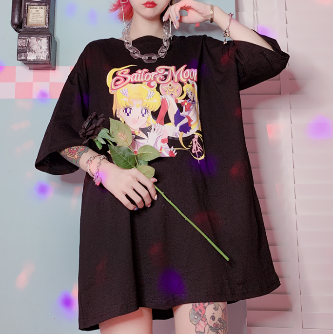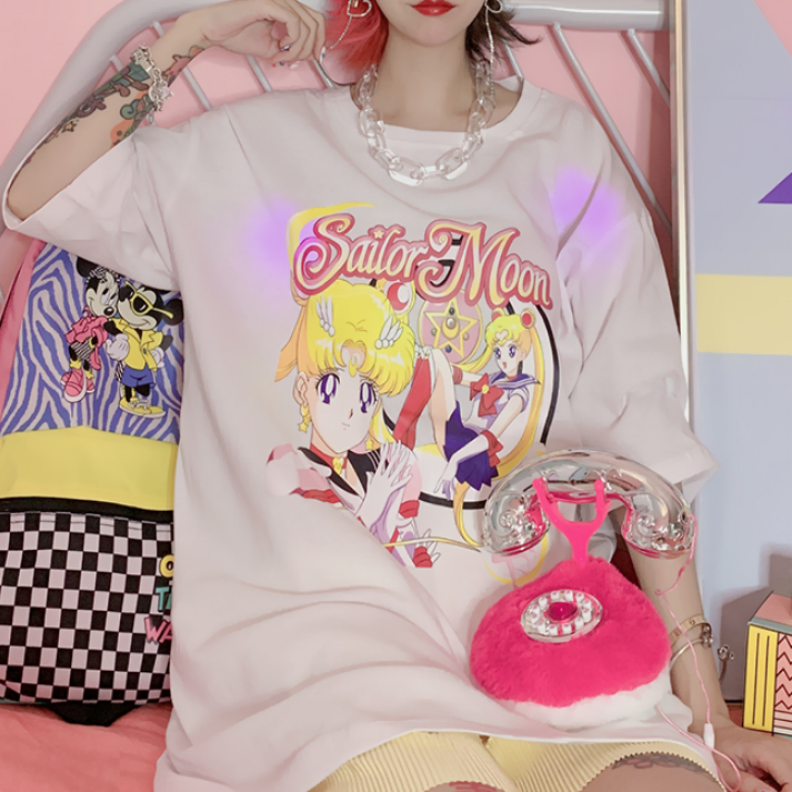 Harajuku & Cartoon sailor moon printed oversize tee.