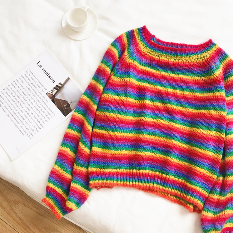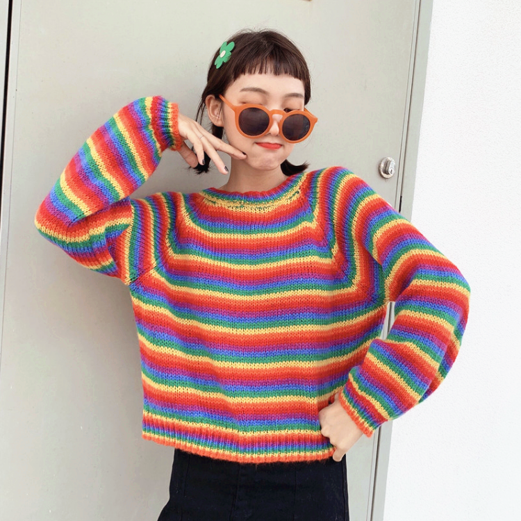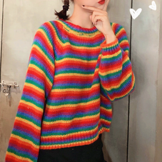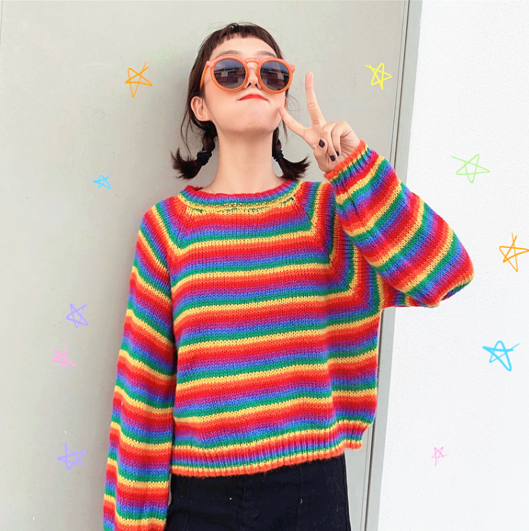 Free Shipping Rainbow Stripe Sweater