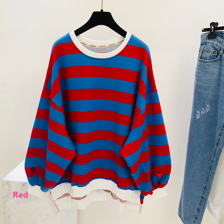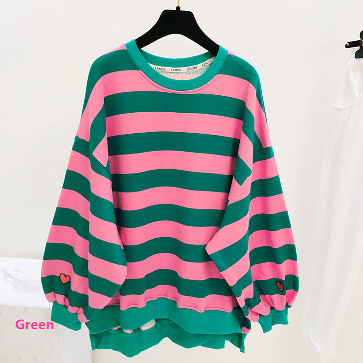 Harajuku Heart Embroidery Color Block Stripe Sweater