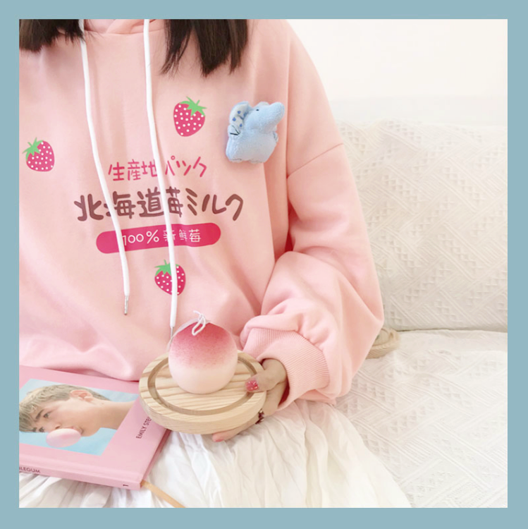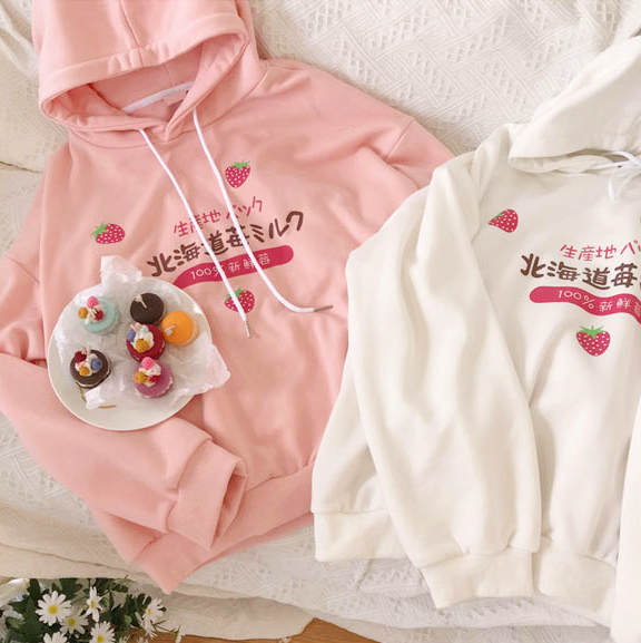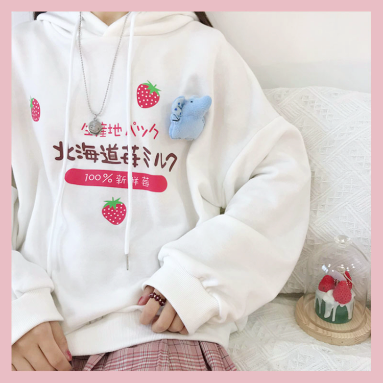 Fashion & Harajuku fresh strawberry white/pink hoodie sweatshirt.