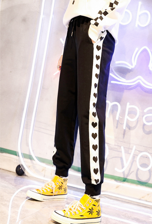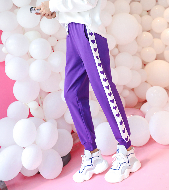 Fashion & Harajuku purple black heart side stripe casual jogger pants.