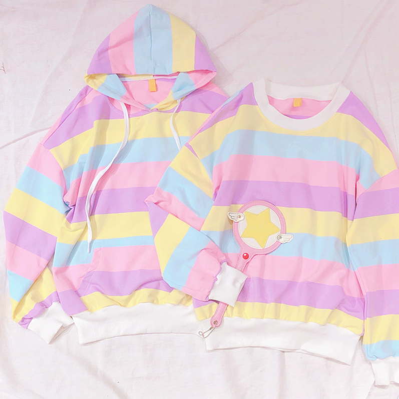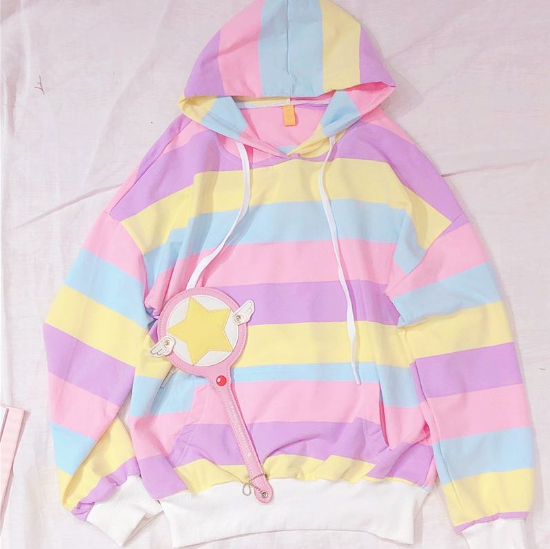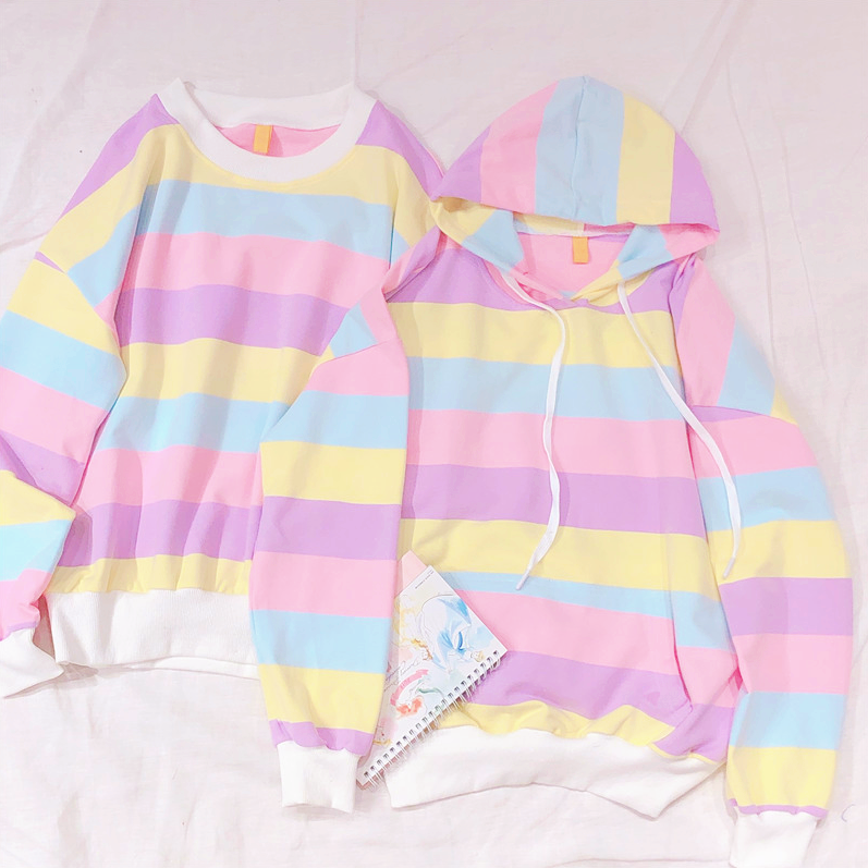 Fashion & Harajuku macaron pastel rainbow stripe color block hoodie sweatshirt.