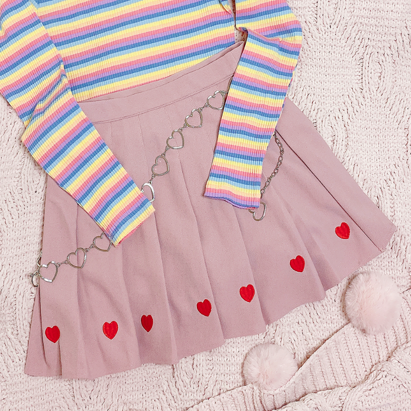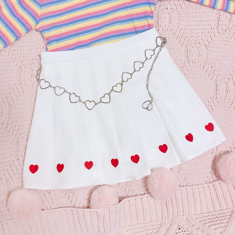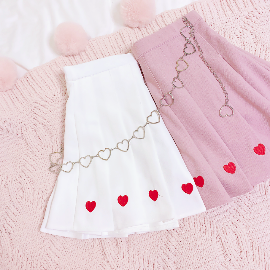 Sweet Love Heart Embroidery Pleated A-line Skirt