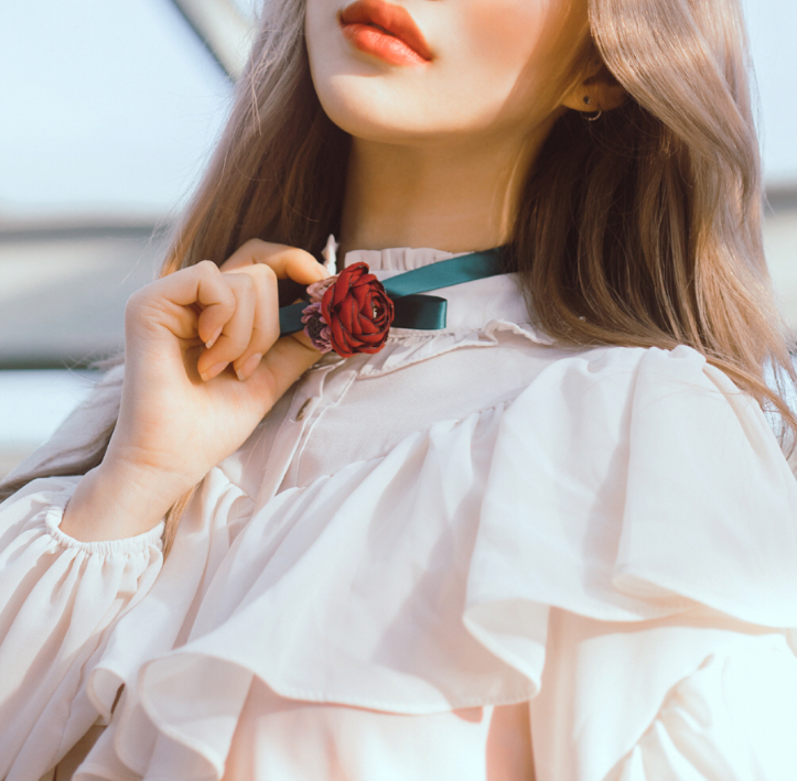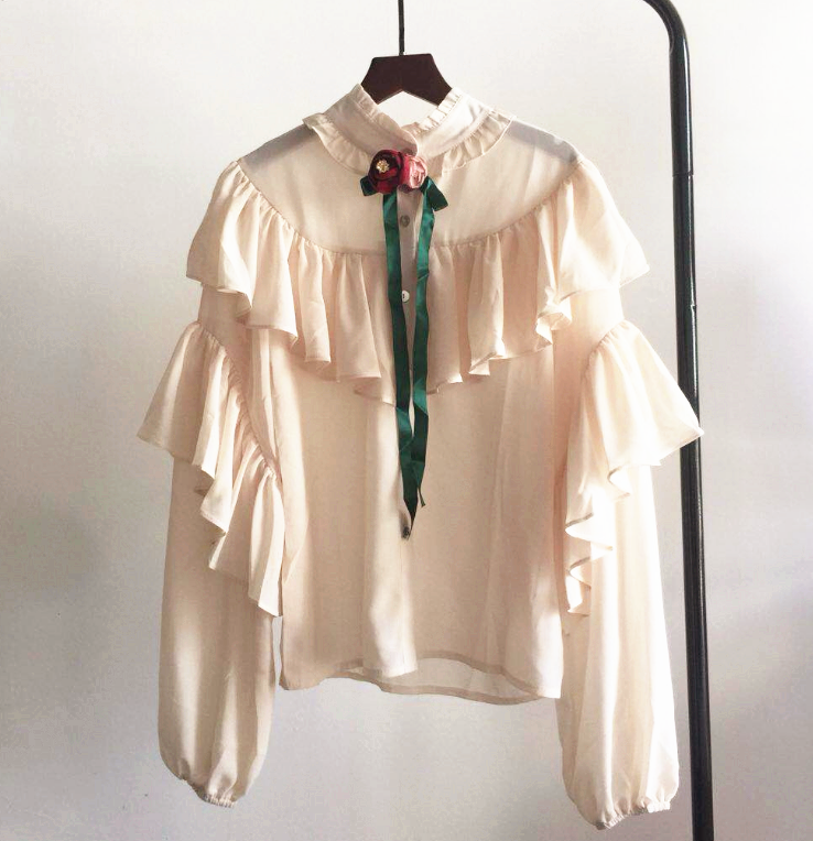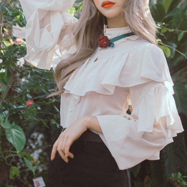 Vintage & Elegance rose flower collar flounce long sleeve blouse women shirt.