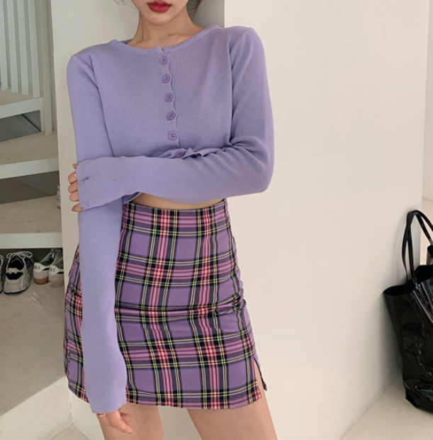 Chic Pastel Purple Long Sleeve Knit Cardigan