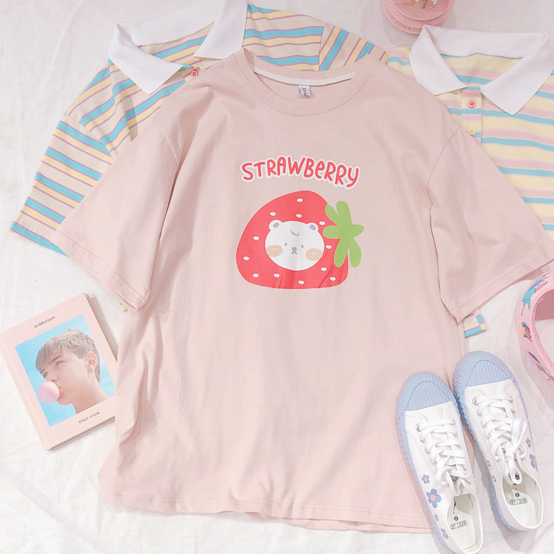 Harajuku strawberry bear printed short sleeve tee.