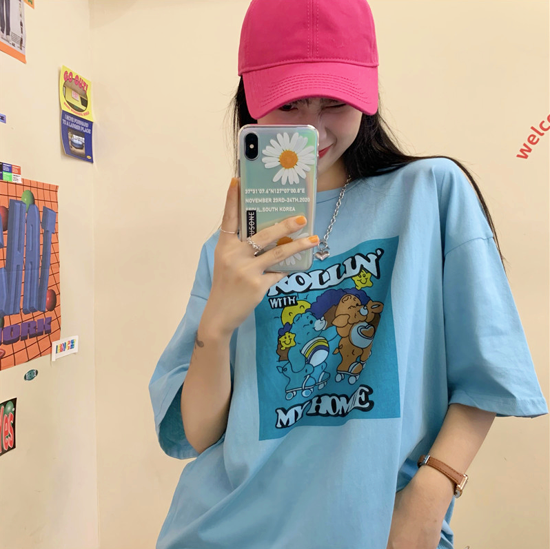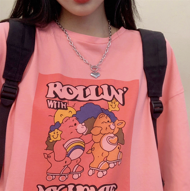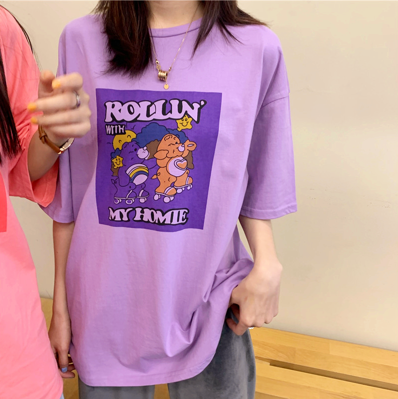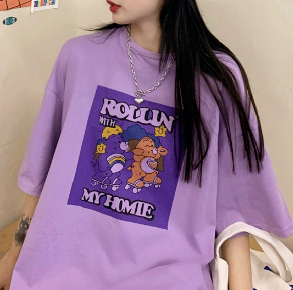 Harajuku pastel purple roller skate bear printed short sleeve tee.