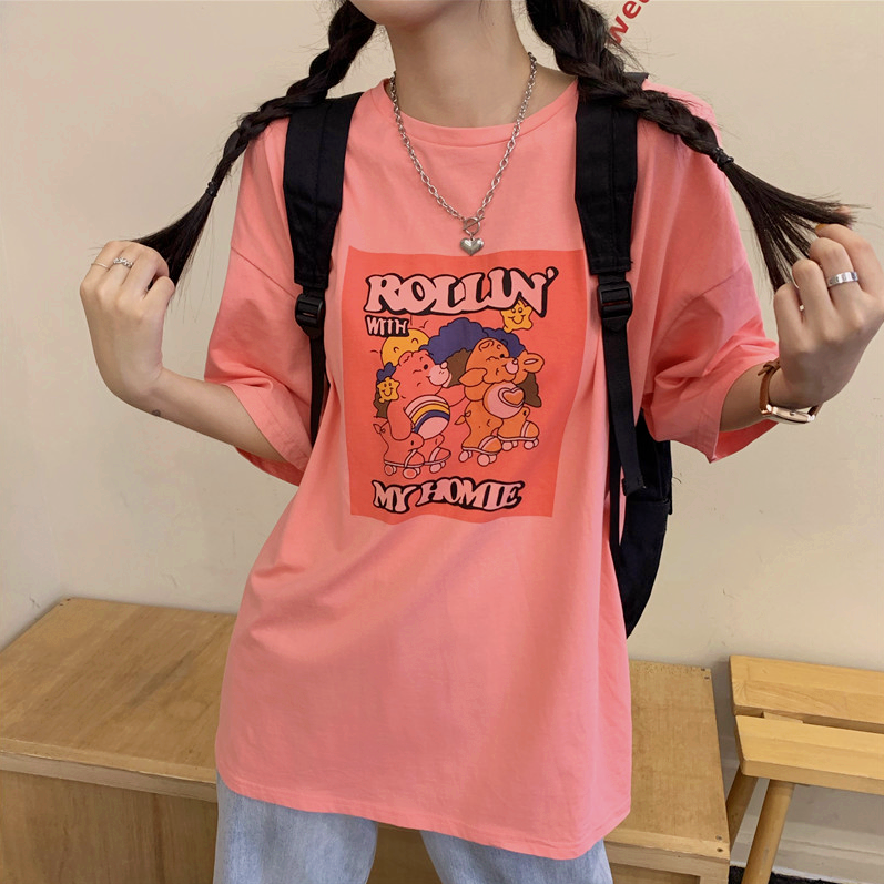 Pastel Color Roller Skate Bear Print Tee