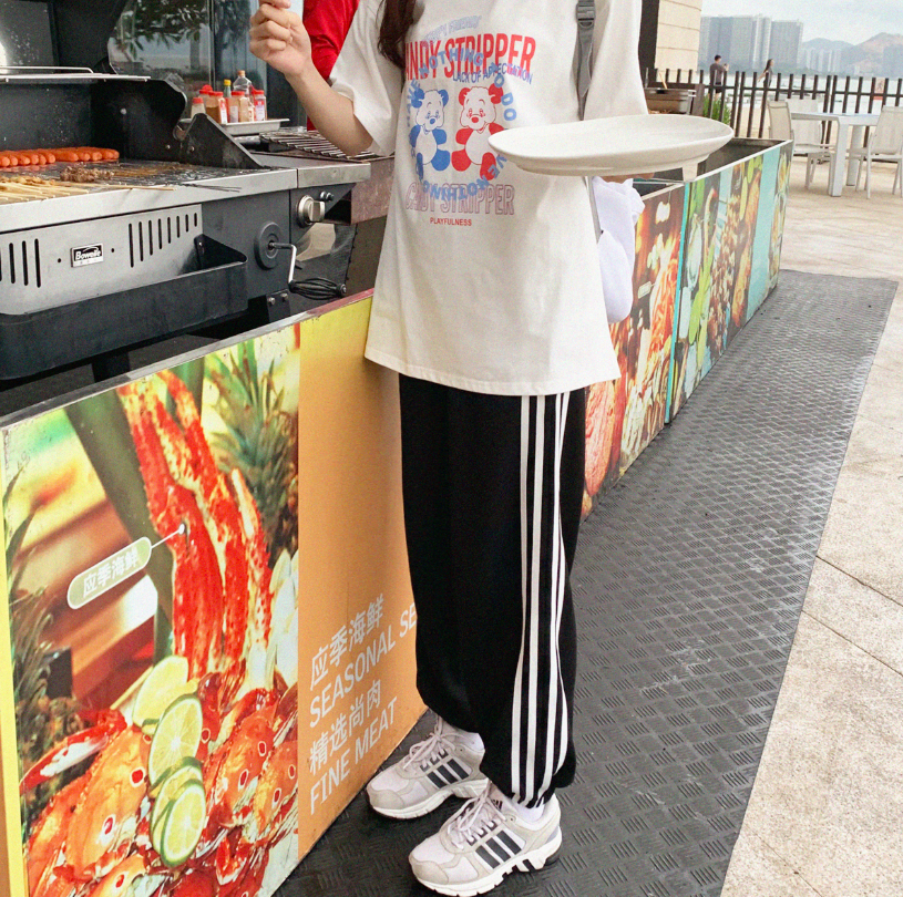 Fashion & Harajuku white stripes casual sporty pants, joggers.
