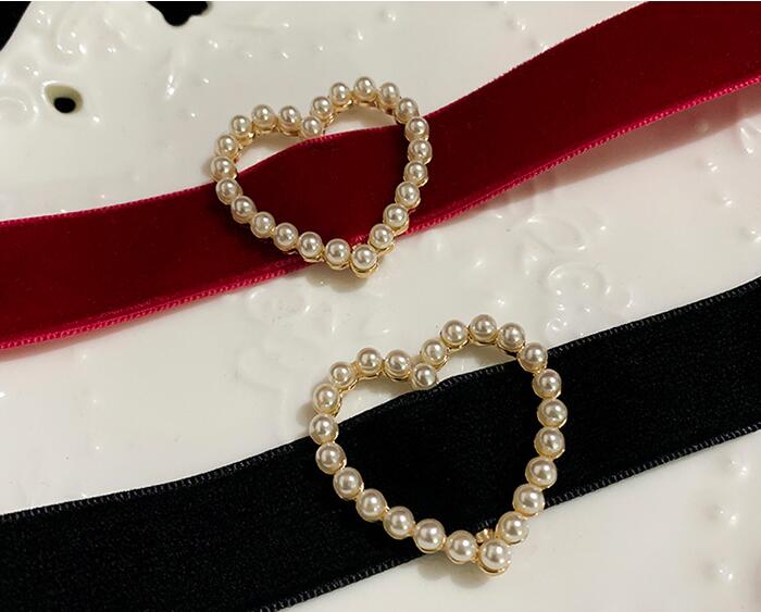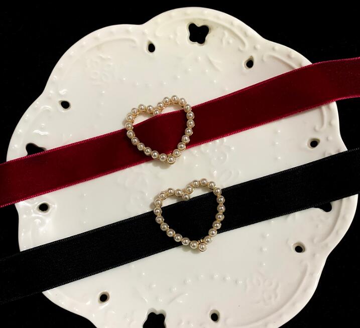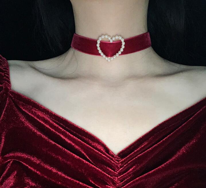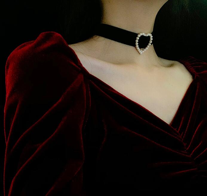 Retro & Elegant black and burgundy velvet choker with pearl.