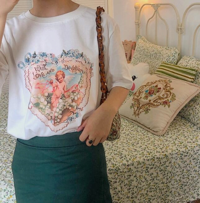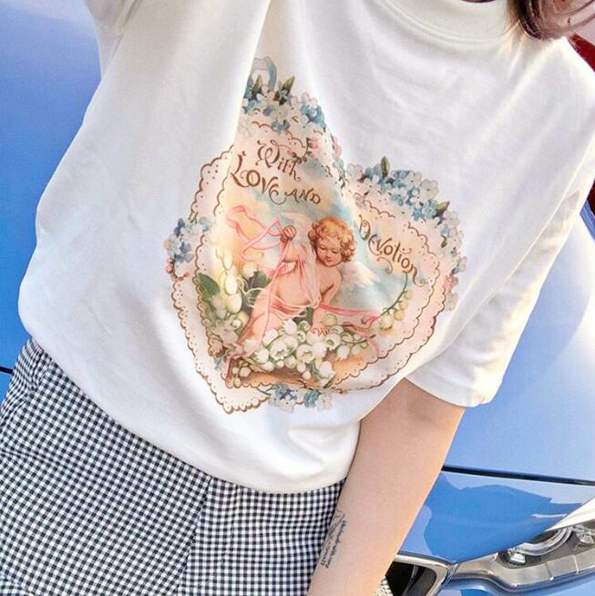 Fashion & Chic angel print short sleeve t-shirt.