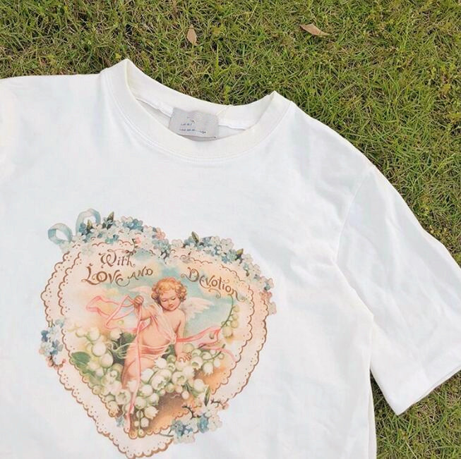 With Love and Devotion Angel Print White Tee