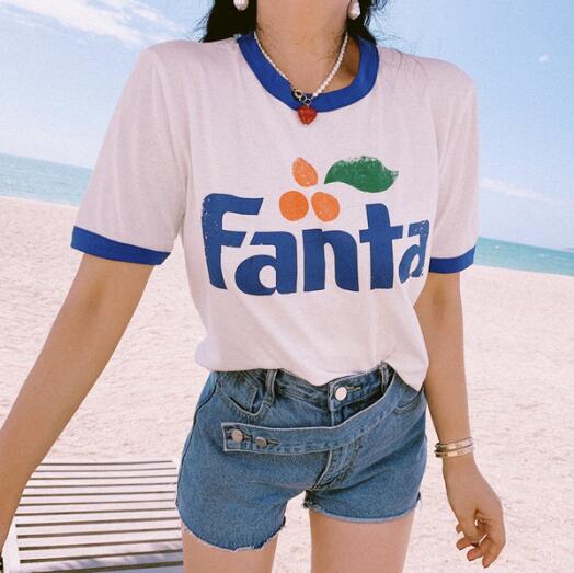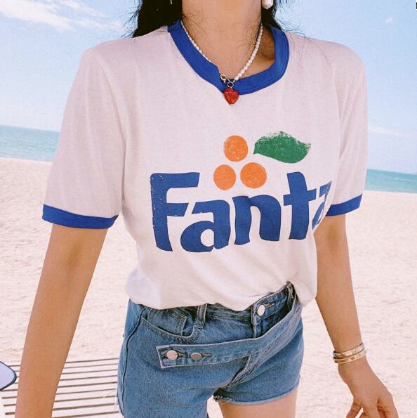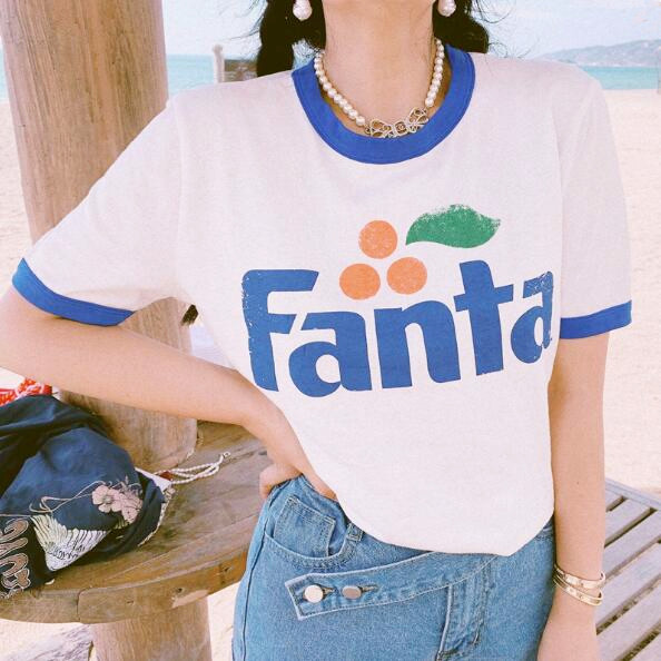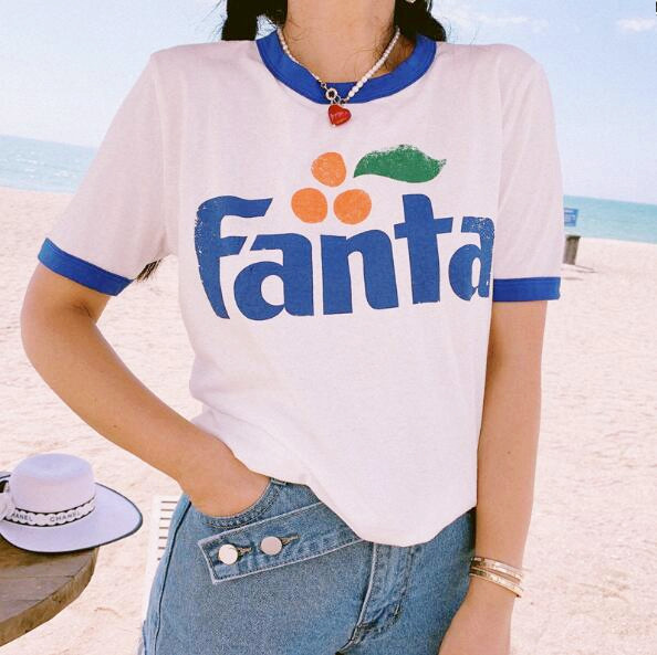 Fashion & Casual color block Fanta short sleeve t-shirt.