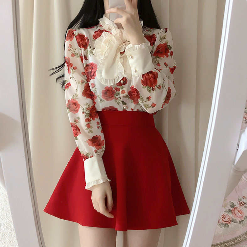Bowknot Floral Flower Chiffon Blouse Shirt