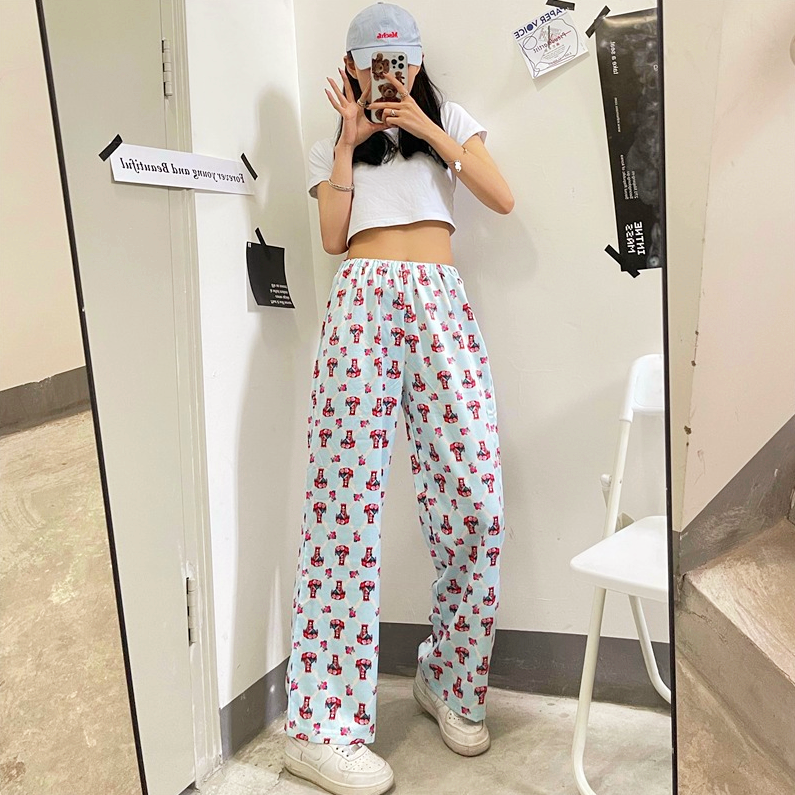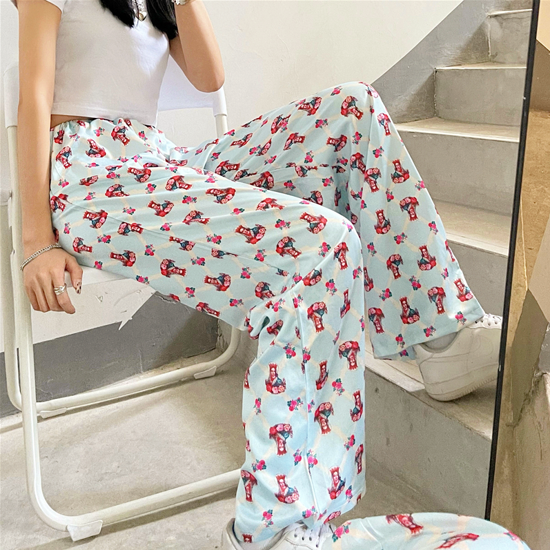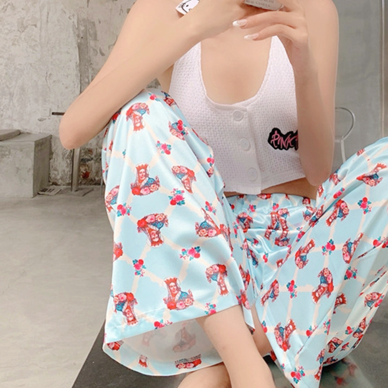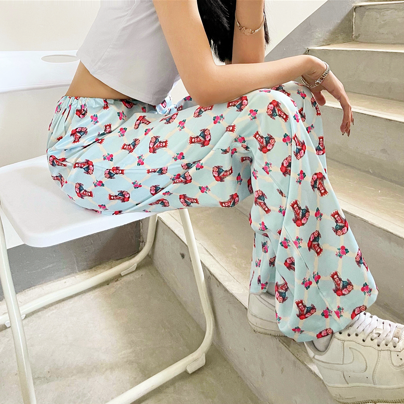 Vintage St. Mary Print Satin Straight Pants