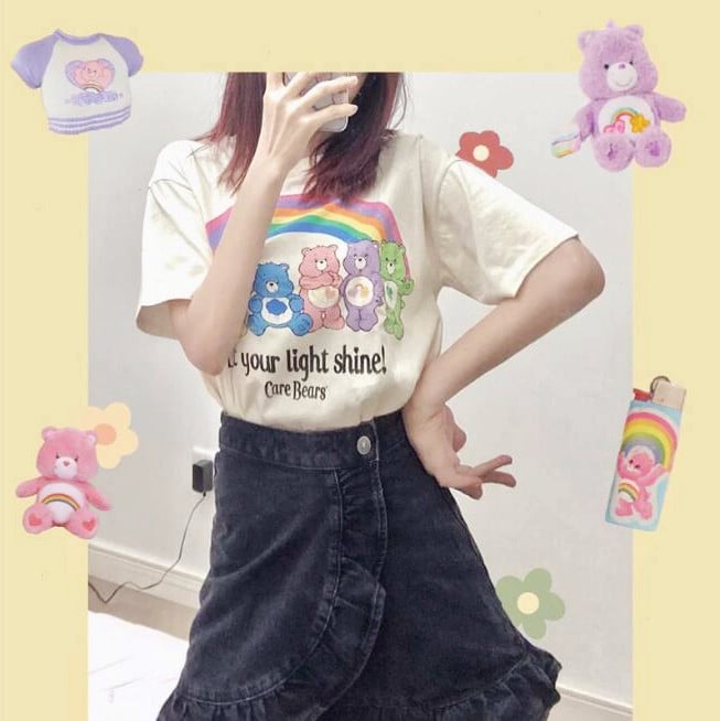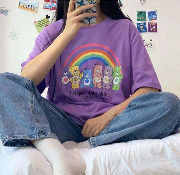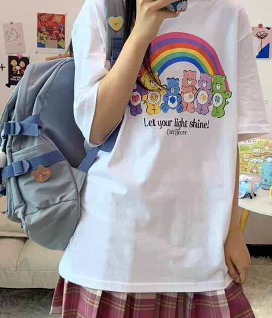 Fashion & Harajuku colorful rainbow bear printed short sleeve t-shirt.