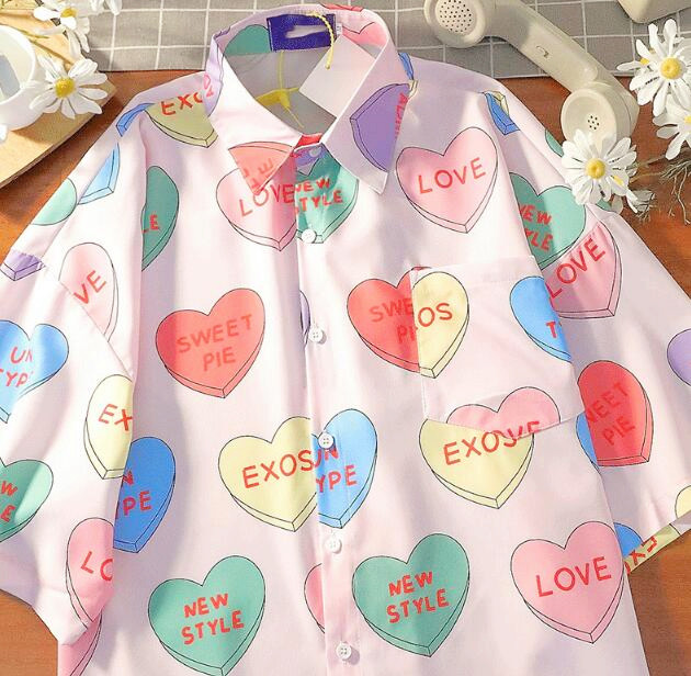 Fashion & Chic sweet love heart short sleeve blouse shirt.