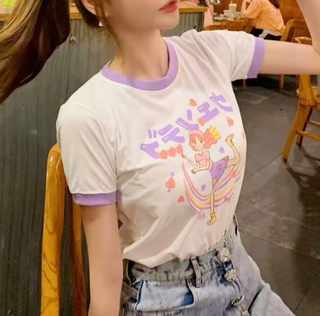 Fashion & Harajuku heart girl printed short sleeve t-shirt.