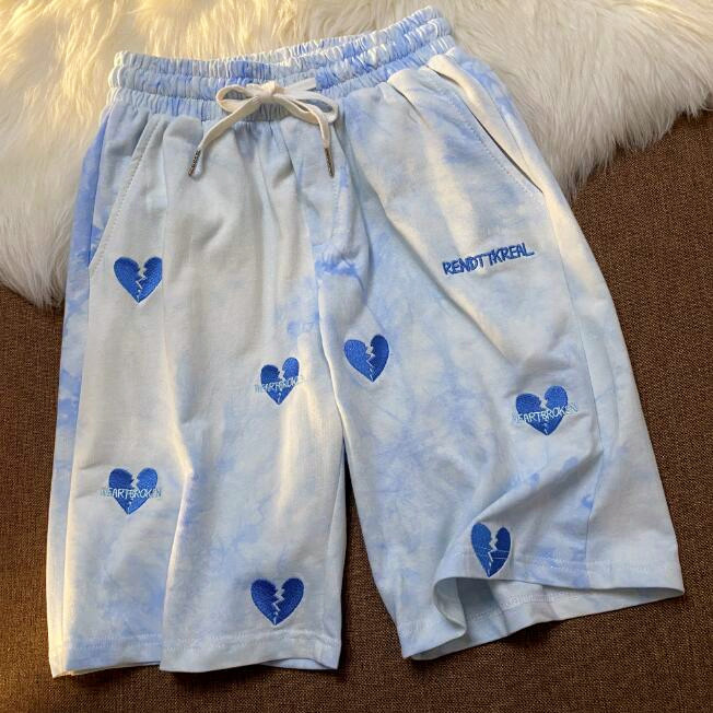 Harajuku & Fashion heart embroidery pastel color shorts.