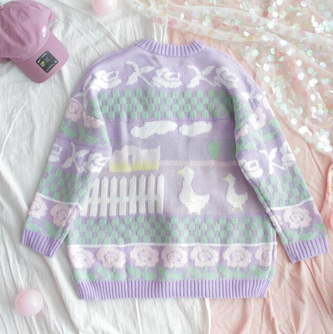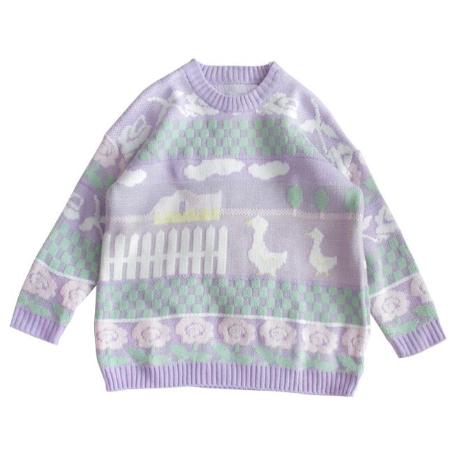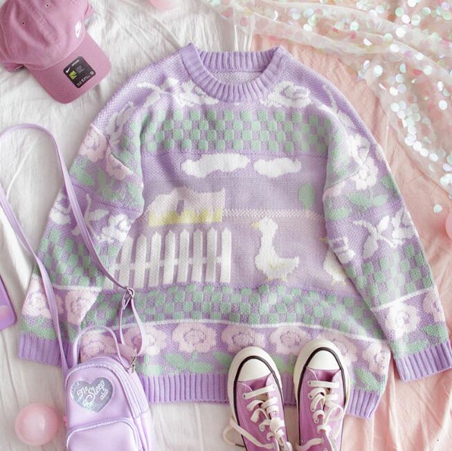 Cute & Harajuku duck pastel purple pullover sweater.