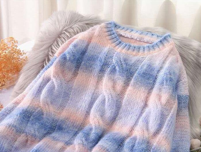 Soft & Harajuku pastel color block gradient stripes sweater.