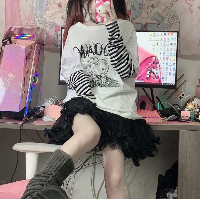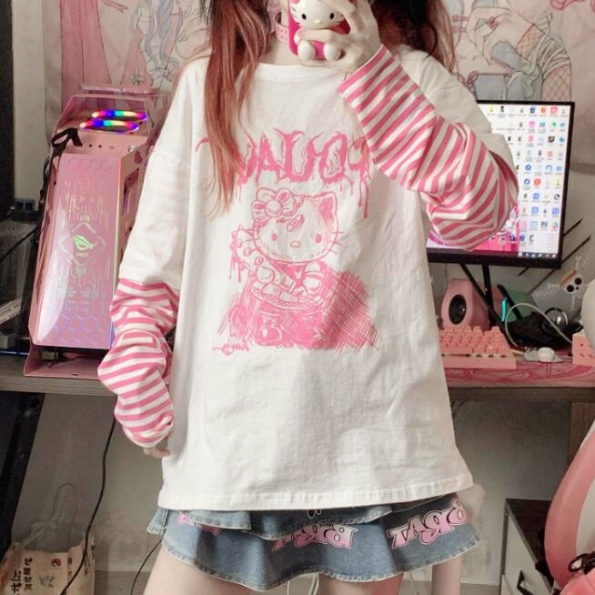 Fashion & Harajuku kitty cat printed long sleeve t-shirt.