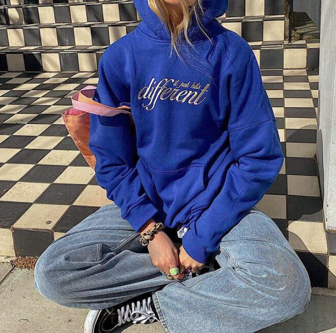 It Just Hits Different Embroidery Blue Hoodie Sweatshirt