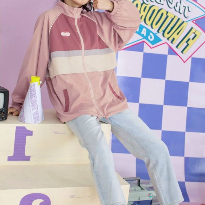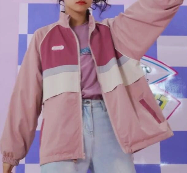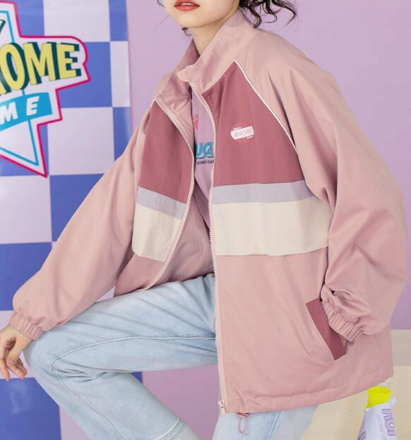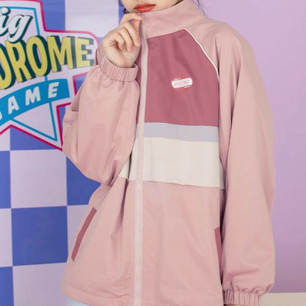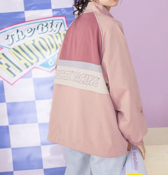 Fashion & Harajuku racing print pastel pink overcoat bomber jacket.